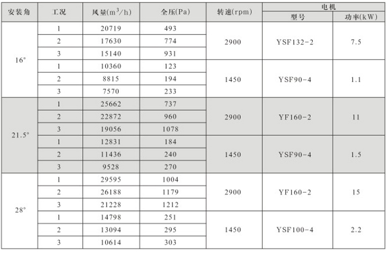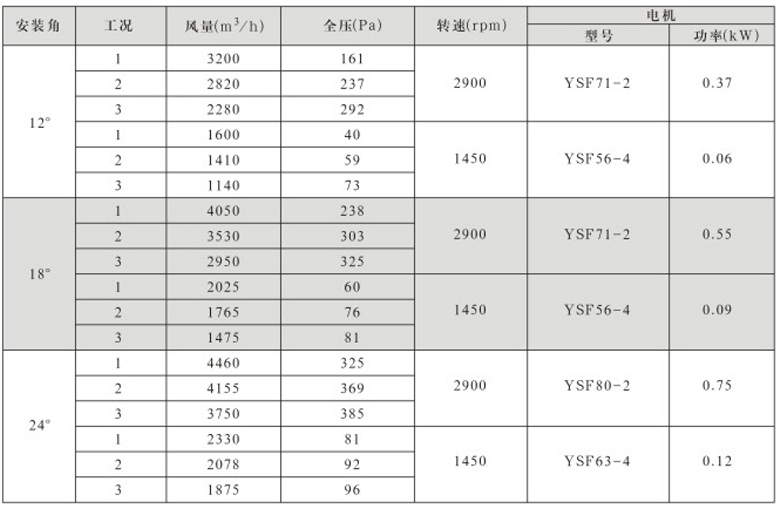 DTF(R)-3.15(6葉)系列地鐵、隧道軸流風(fēng)機(jī)性能表