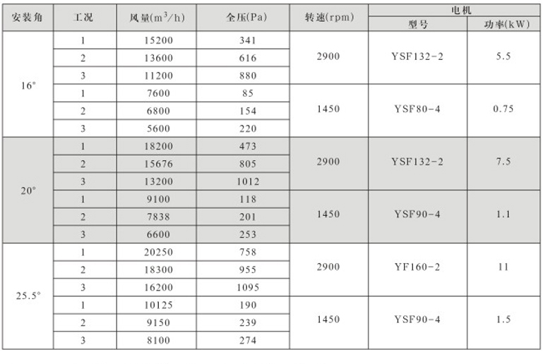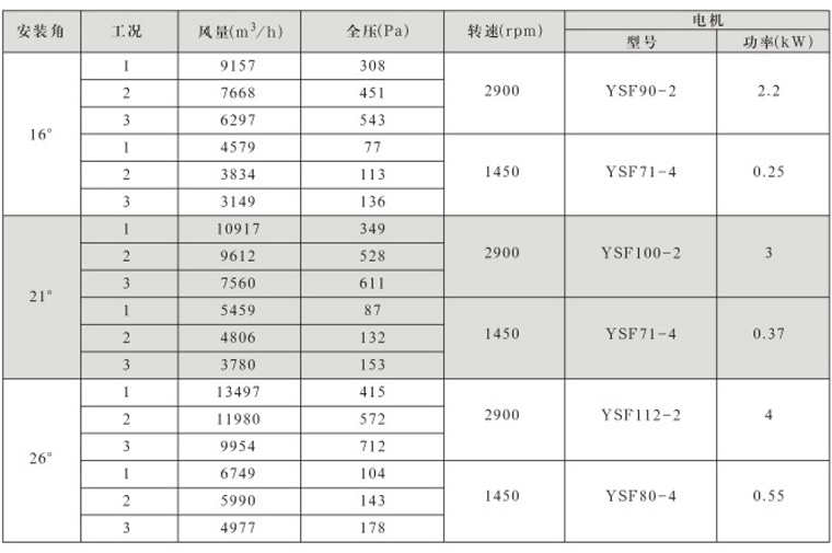 DTF(R)-4.5(6葉)系列地鐵、隧道軸流風(fēng)機(jī)性能表